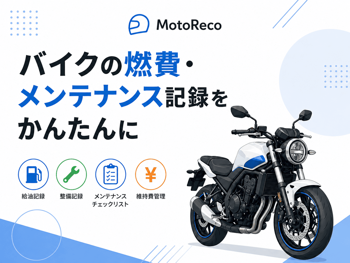 MotoRecoでは、バイクの燃費・給油・メンテナンスをかんたんに記録できます。